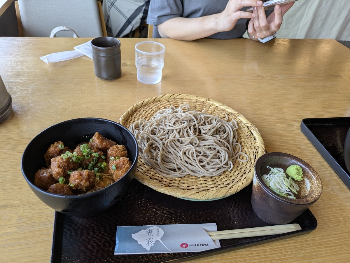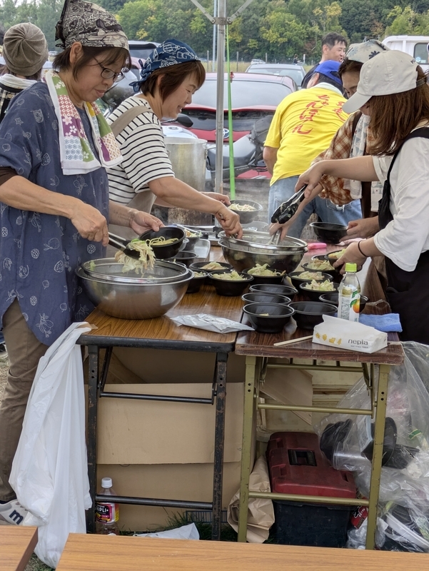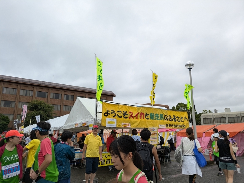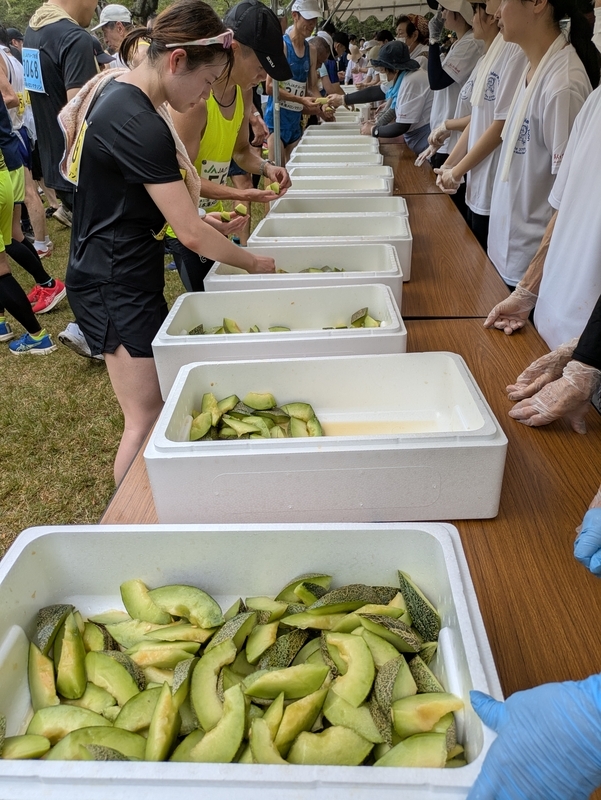 ウサギのタイム差が48分あったので、ゆっくりとヨモギうどん、火畑そば、おにぎりを大量に食いまくった。