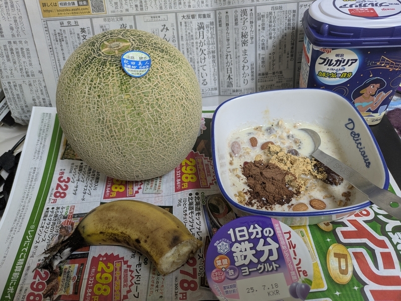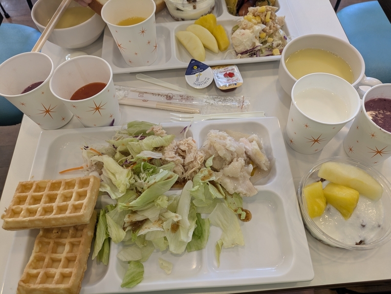 朝食にはリタイヤしたので食べられなかったパイン甘熟王としゅりちゃんのお土産も追加。