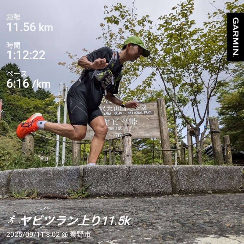 緩く続く美女峠への坂道は並走出来て声を掛けれたけど、急坂に差し掛かると呼吸が早くも苦しくなって追いつけなかった。